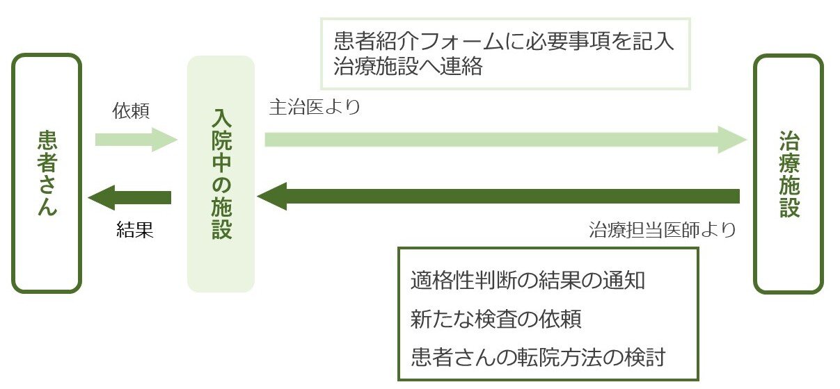 必ず、入院中の医療機関の主治医に当院への紹介のご依頼くださいますよう、よろしくお願いいたします。