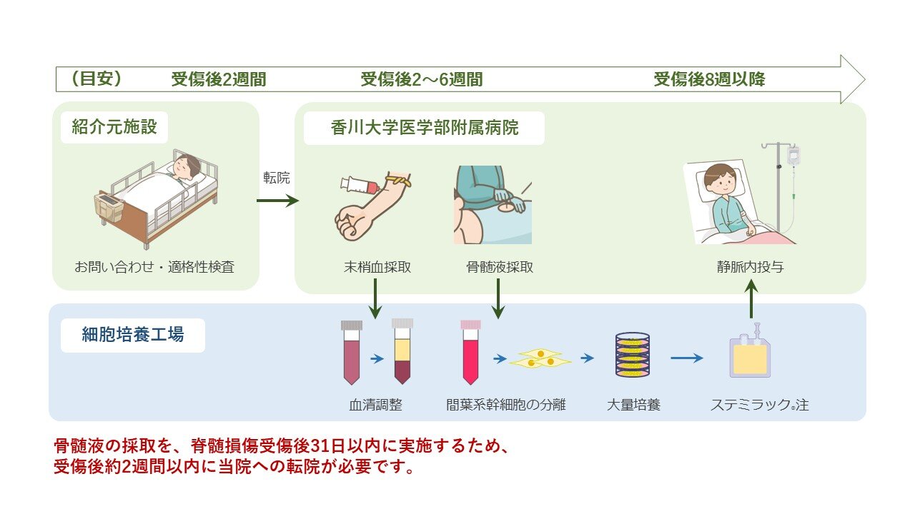 ステミラック®注は、受傷後31日以内を目安とした骨髄液採取が定められているため、できる限り迅速なご相談をお願いいたします。